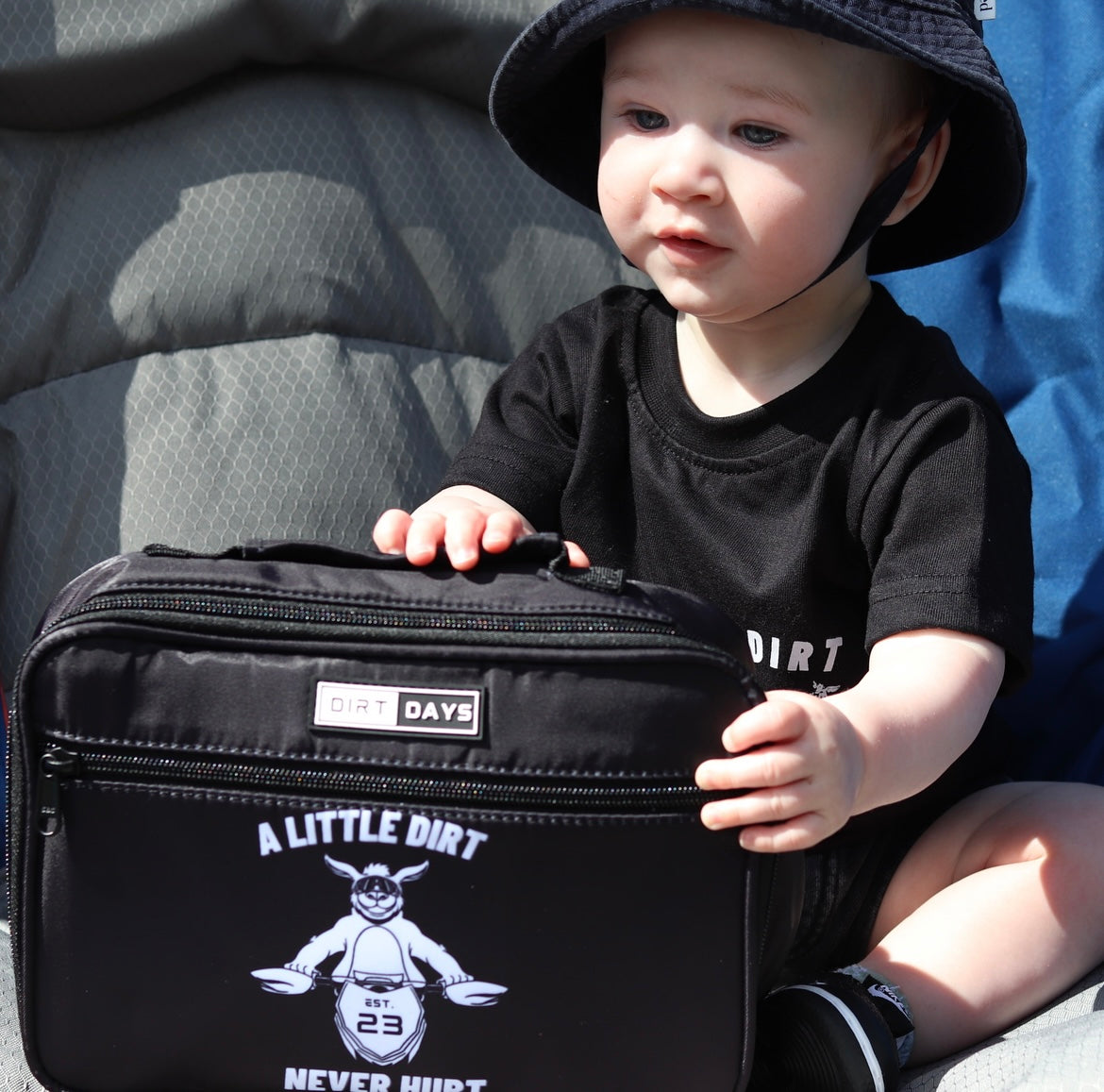 Make lunchtime fun with our 'A Little Dirt Never Hurt' lunchbox. Made with a durable polyester exterior and insulation on the inside to keep your items perfectly chilled.